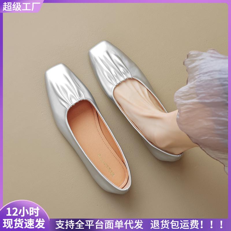 Square head single shoes women's flat bottom shallow mouth one pedal gentle soft sole ladyshoes