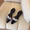 Gentle fashion elegant temperament one-word buckle sandals women's square head bright leather flower bag head shoes
