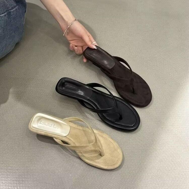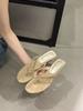 High sense of high heel summer new toe high heel drag versatile outer wear round head slope heel flip-flops women
