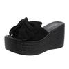Sandals women spring and summer new slope heel thick bottom go out bow slippers fashion one word drag women