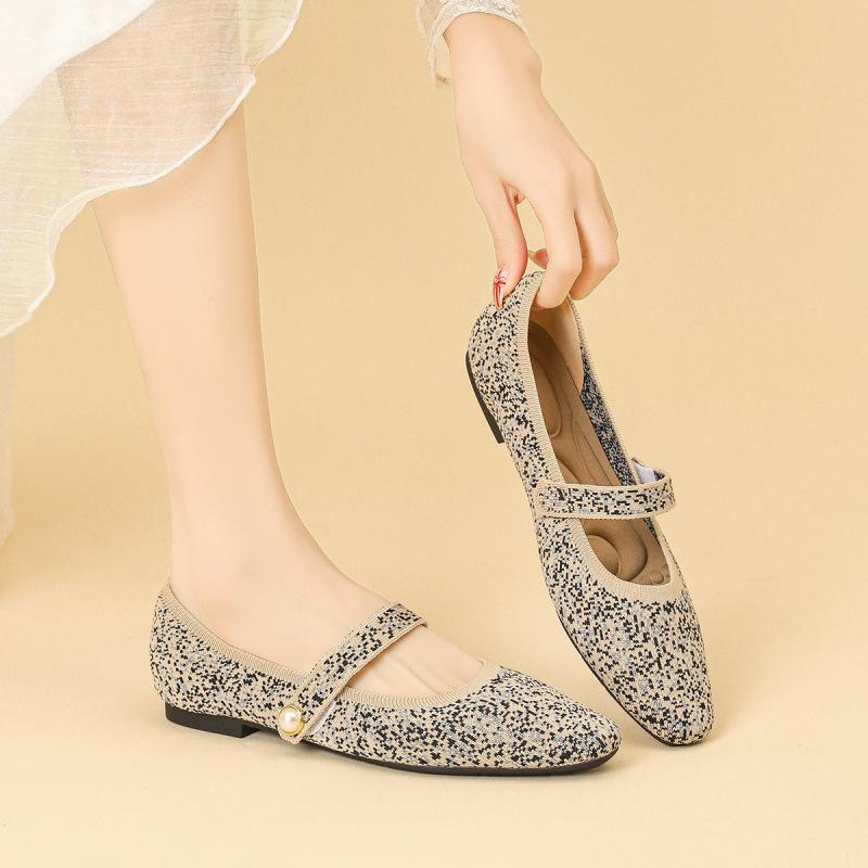 New one-word mixed belt fly-woven Mary Jane single shoes woven shoes flat-soled single shoes women