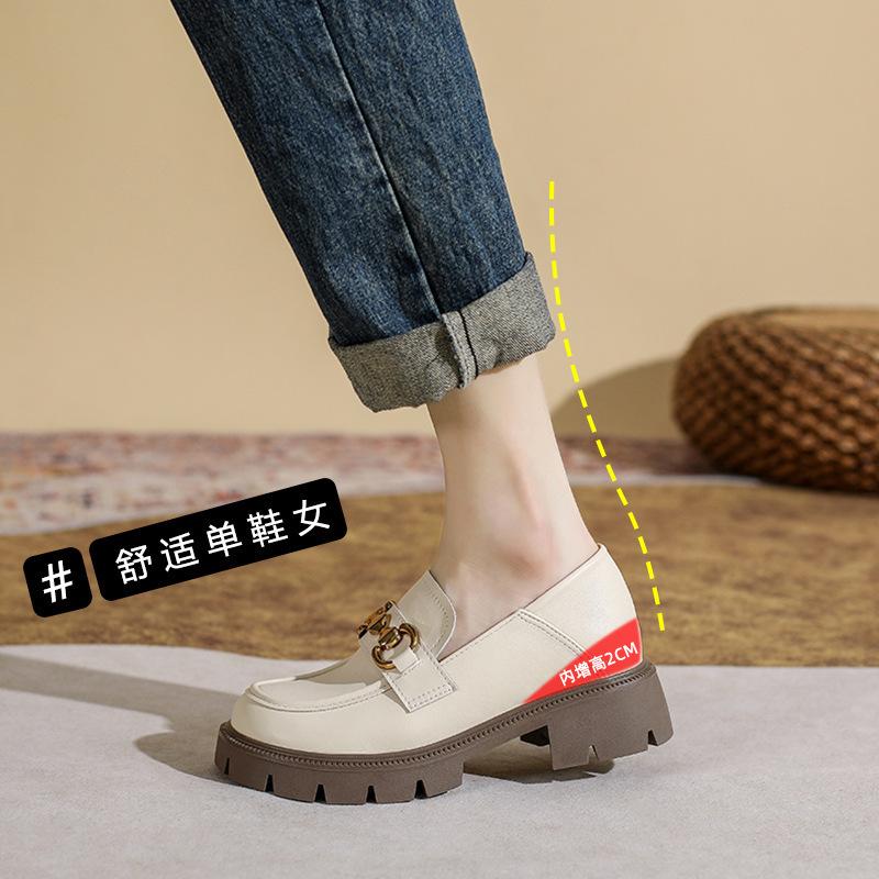 Inner height increase small leather shoes for women, British new thick-soled versatile metal buckle small size 3233 single shoes for women