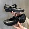 Loafers single shoes women's buckle wedge sandals thick sole heightening temperament black small leather shoes mother work shoes high heel