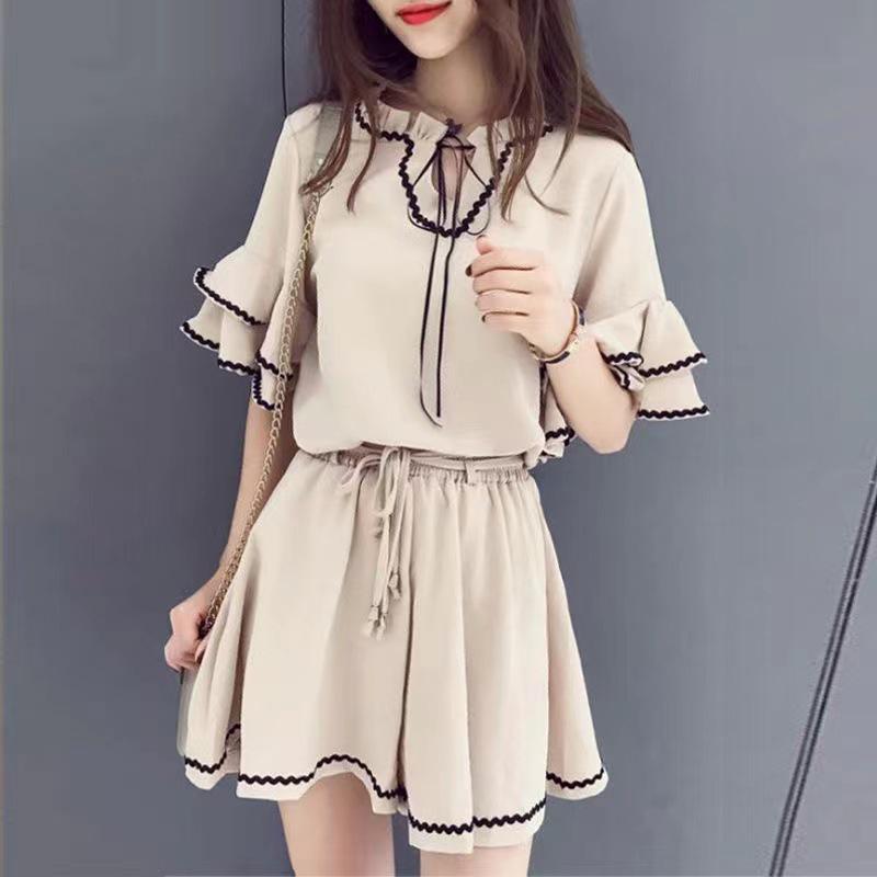 Discover contemporary elegance with this stylish set, featuring a chic lotus sleeve top and high waist wide leg shorts. Crafted from high-quality polyester, its solid pattern and fashionable design make it perfect for enhancing your summer wardrobe. The lightweight fabric ensures comfort and breathability, ideal for casual outings or warm-weather adventures. Embrace the Korean Hong Kong style with this versatile and sophisticated ensemble.
