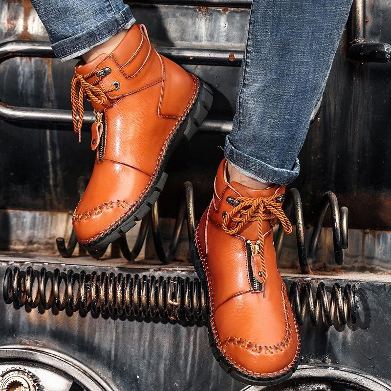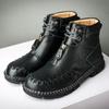 Men's boots autumn and winter outdoor medium and high-top shoes 2021 fashion leather boots trendy casual shoes sewn shoes large size men