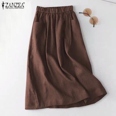 ZANZEA Moteriški kasdieniai elastingu juosmeniu vienspalviai vasariniai sijonai