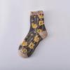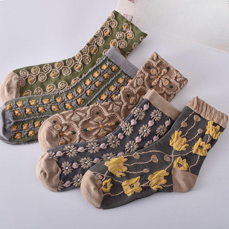 Court-style Retro Ethnic Style Women's Mid-calf Socks, Women's Autumn and Winter Three-dimensional Relief Coffee-colored Artistic Floral Women's Socks