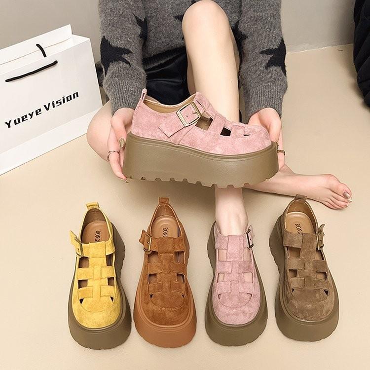 Aukštakulniai batai su storu padu ir tuščiaviduriu kulnu, nauji pavasario ir vasaros Mary Jane vienviečiai batai su krepšio priekiu, sandalai