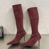 Street Style Autumn Winter Pointed Toe Women Knee-High Boots Fashion Zipper Thin High Heels Banquet Prom Shoes