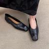 Sheepskin~ Minimalist row style leather versatile flat-bottomed laden shoes one pedal retro light mouth single shoes square head polishing shoes