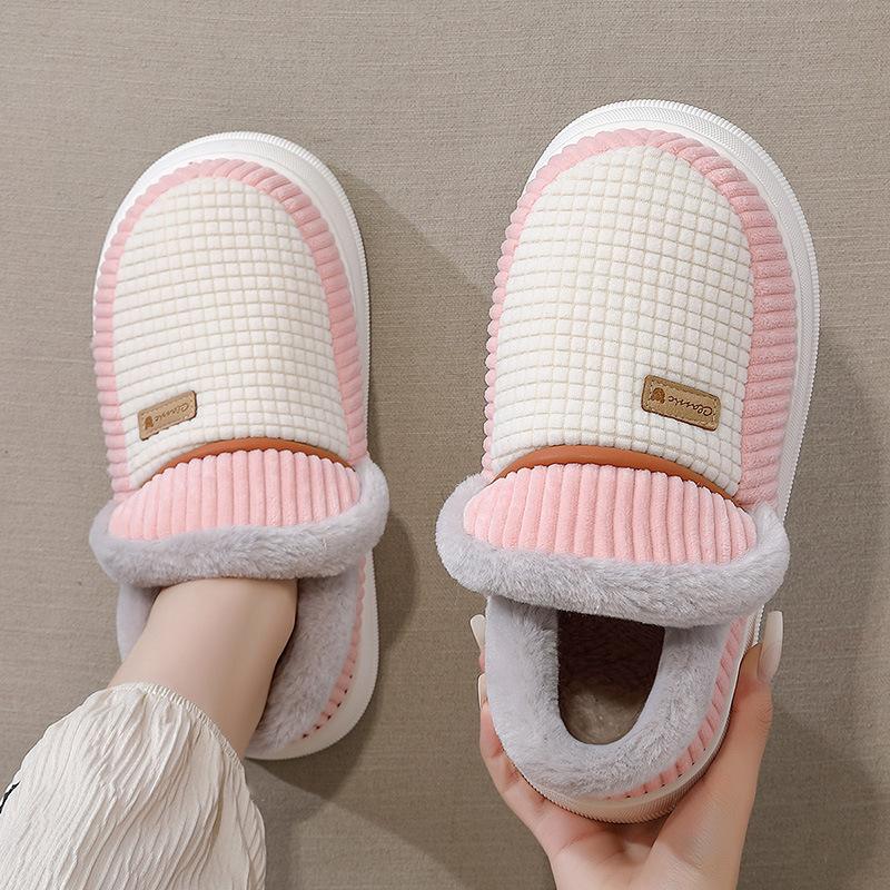 Bag heel cotton slippers women's season plush warm plush plaid men's day thickened non-slip cotton shoes men