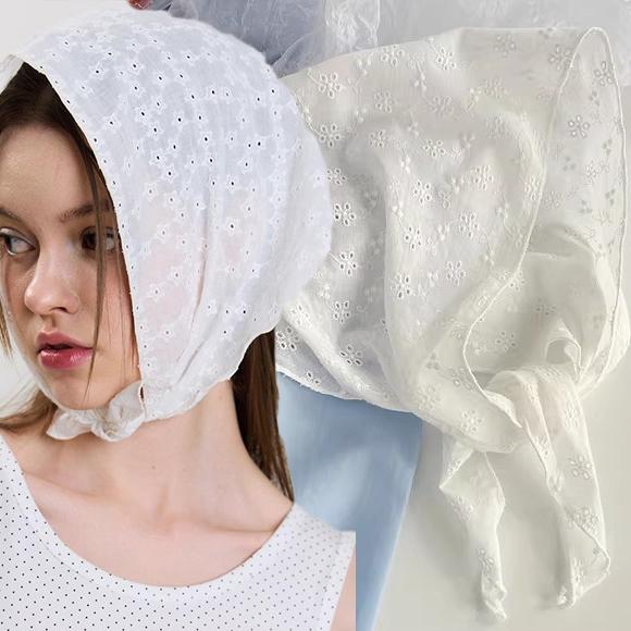 White Flower Vine Triangular Scarf for Women Solid Color Headscarf Trend Elegant Headwear for Female Girls Y2K INS Summer