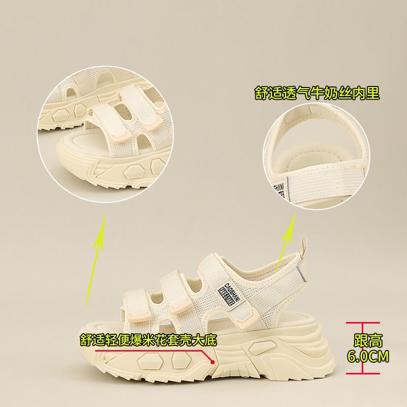 Popcorn cover shell platform sandals women's 2025 summer new Velcro sports style sandals women's casual beach shoes