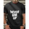Muscleguys Never Give Up Printed Mens Loose Running T-shirt Summer Quick Dry Gym Fitness Clothing Bodybuilding Sports Half Sleeve T Shirt