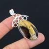 925 Sterling Silver Oval Peanut Wood Jasper Gemstone Anniversary Bezel Pendant