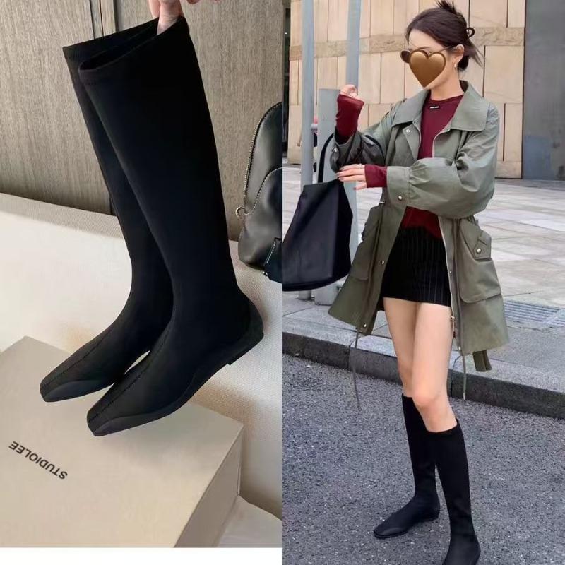 Studiolee fashionable comic legs~ temperament square head flat bottom bare boots bag legs medium tube thin boots women