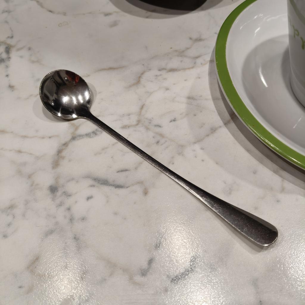 Šaukštelis apvalios formos nerūdijančio plieno šaukštelis. Puikiai tinka desertams, arbatai ar pusryčiams. Idealus pailgiems žolelių arbatos puodeliams arba vakariniam stiklinei pieno. . Įpakavimas: plastikinis maišelis Jokių defektų. Atvyko su sekamu siuntimu per 20 dienų į Italiją. Rekomenduojamas pirkinys 👌