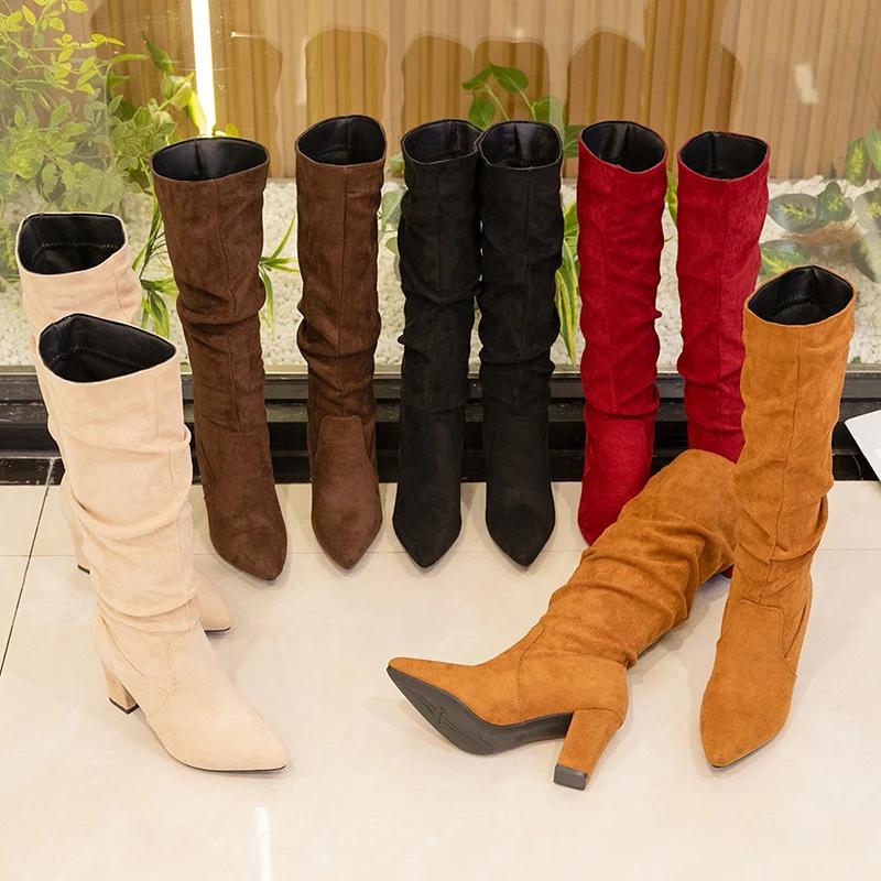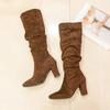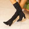 Pointed Toe Pleated Women Long Boots Fashion Slip On Knee High Booties Designer Thick Heels Largas Bootieser