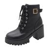 2024 Spring and Autumn New Casual Versatile Women's Boots with Black Round Head Coarse Heel Strap Buckle, Women's Short Boots