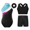 Mergaičių gimnastikos kostiumo rinkinys su berankove leotard liemene, šortais, juosmens juosta ir plaukų juostele