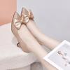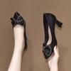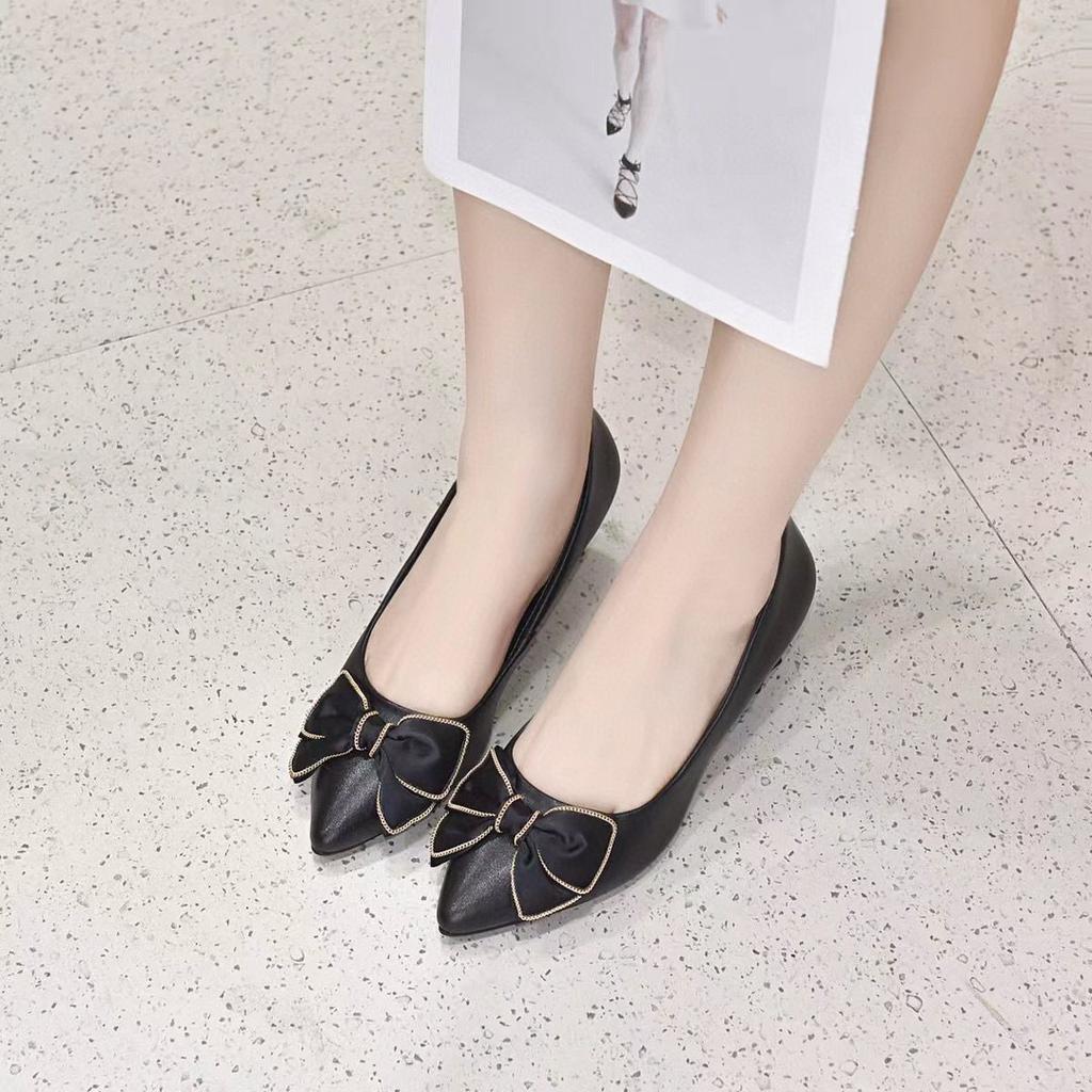 Pointed high heels women's spring and summer new bow cowhide shallow mouth single shoes simple temperament fashion shoes