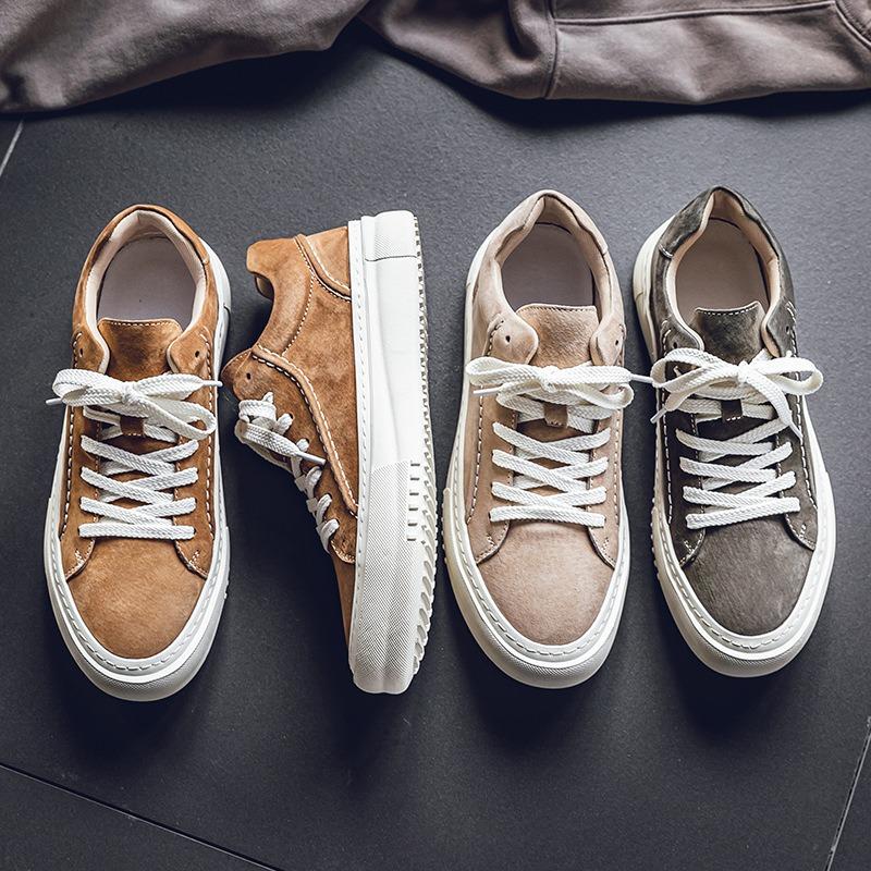 Pigskin casual men's shoes new summer tooling function retro British board shoes low-top white shoes men