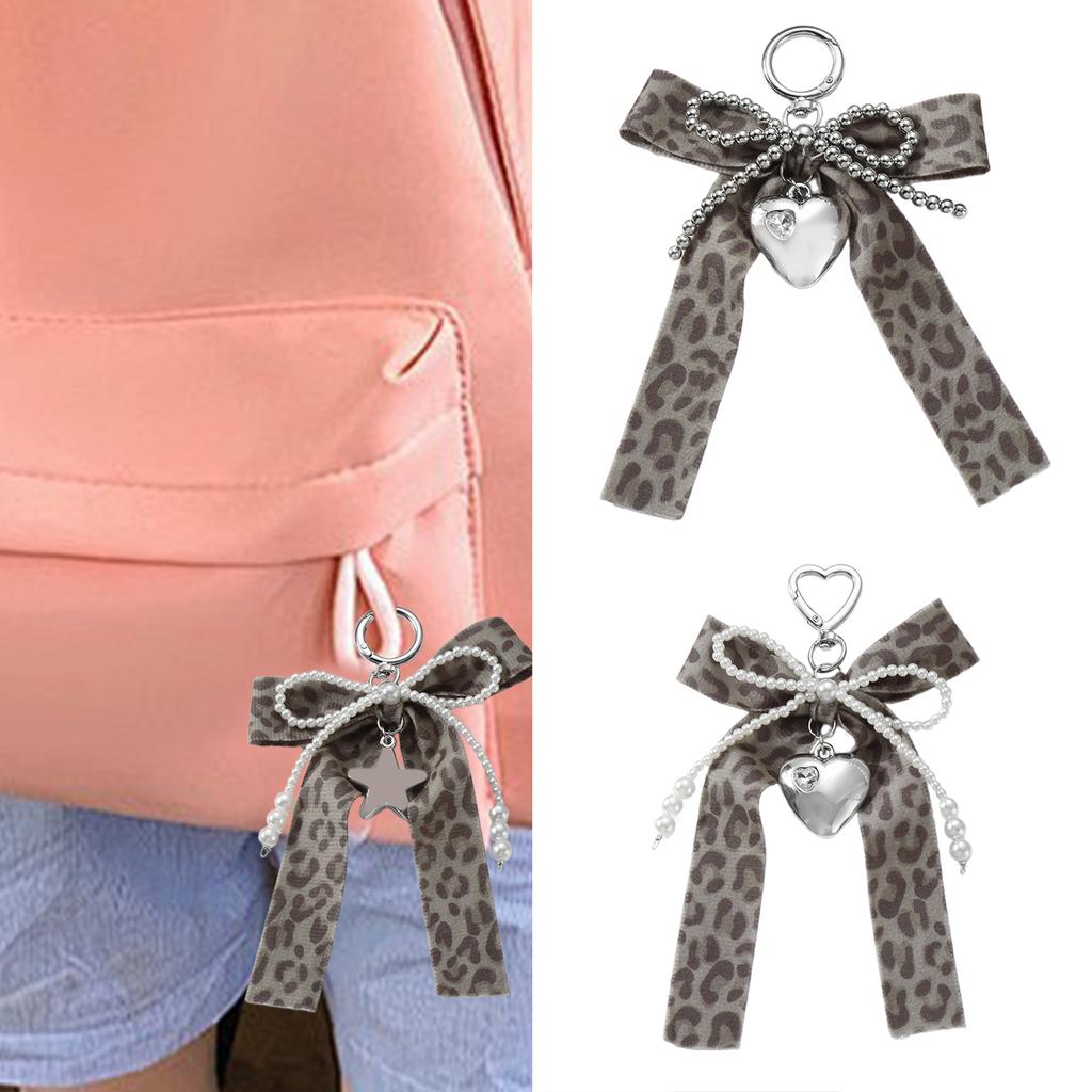 Bows Keychain for Women Girls Leopard Print Bag Accessories Charm for Women Alloy Keyring Fashiion Bags Pendant