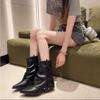 2024Brand Design Pointed Toe Square Heels Winter High Botas Concise Office Ladies Shoes Pleated Silp-on Winter Boots