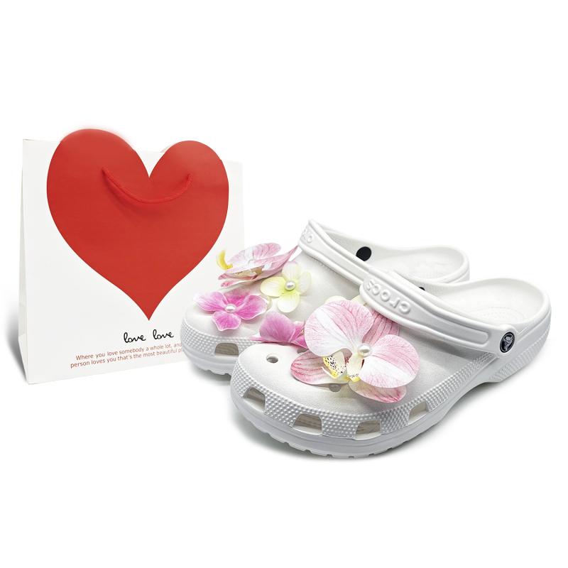 Crocs Classic clog EIGHT% Phalaenopsis Elegant Fresh Trendy Comfortable Gift Bag Edition Unisex White