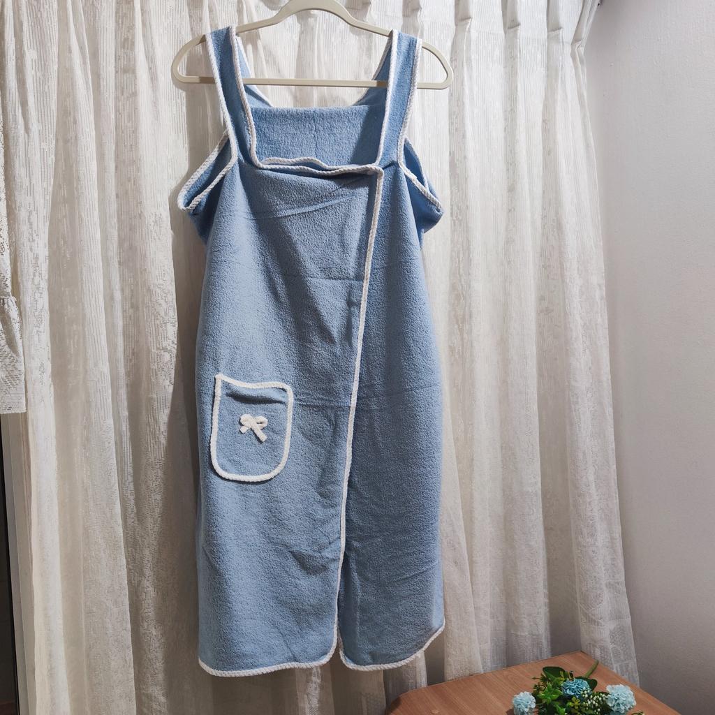 1 vnt. Nešiojamas vonios rankšluostis Sugeriantis Greitai džiūstantis Chalatas su kišenėmis Dekoratyvinis kaspinas Vonios rankšluostis Vonios kambario aksesuarai