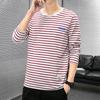 Men's Clothing Spring Autumn Round Neck Pullover Long Sleeve Geometric Embroidery Striped Contrast Color T-shirt Casual Tops