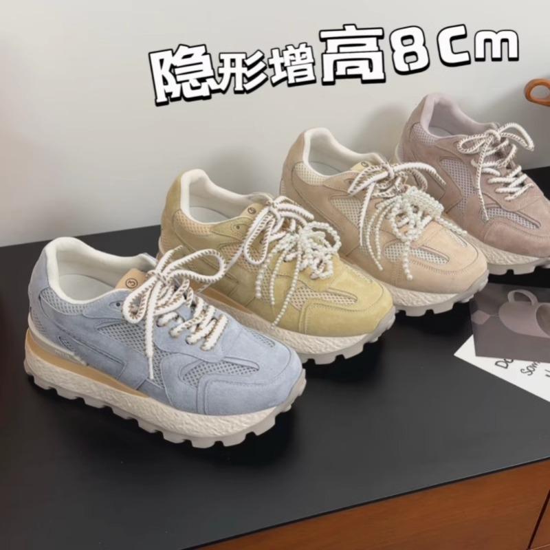 Niche inner height increase women's summer new leather versatile sports and leisure dad shoes
