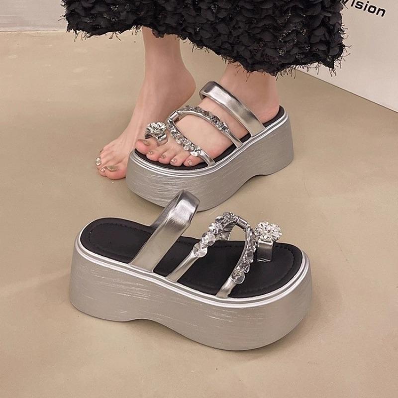 Fashion cover with skirt, toe rhinestone high-heeled sandals for women's summer wear, new muffin thick-soled heightening cool slippers