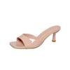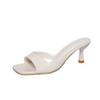 Patent leather high-heeled cool slippers women's summer new square-heeled thin-heeled plus-size women's slippers