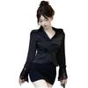 V-neck Lace Long Sleeve Shirts Lace Clothing Sleeves Slim Buttons Shirts Korean Style Blouse Women