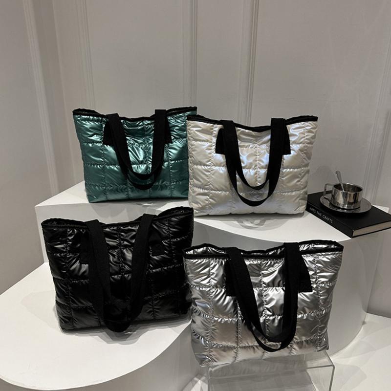 Ladies Tote Handbags Large Capacity Cotton Padded Shopping Bag Rhombus Portable Handbag Quilted Solid For Leisure Travel