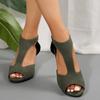 2024 Summer Women's Shoes Fashionable Solid Color Open Toe Stiletto Heel Zipper Style Medium Heel Women's Fish Mouth Sandals