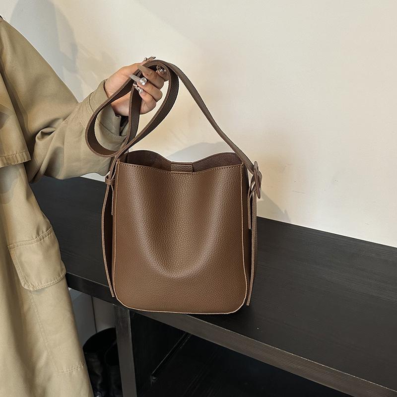 Retro casual shoulder bag women's new fashion solid color bucket bag small bag trendy commuter messenger bag