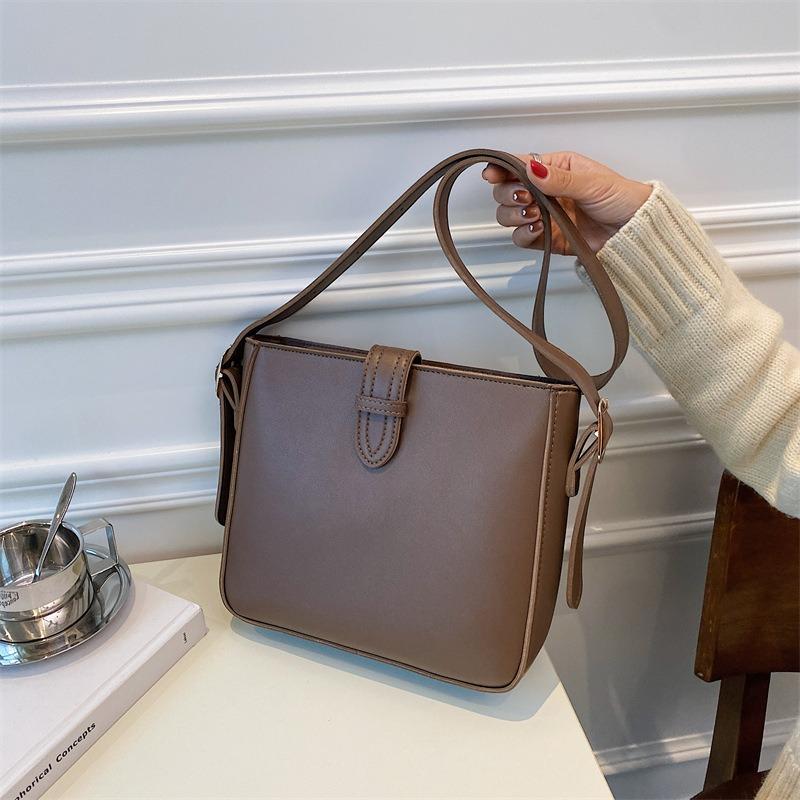 Fashion trend women's bag new simple solid color shoulder messenger bag texture retro bucket bag