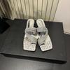 Fashion New Style Crystal Women Slippers Luxury Sandals Square Toe High Heels Shoes Woman Trend Summer Party Pumps Elegant Sandals
