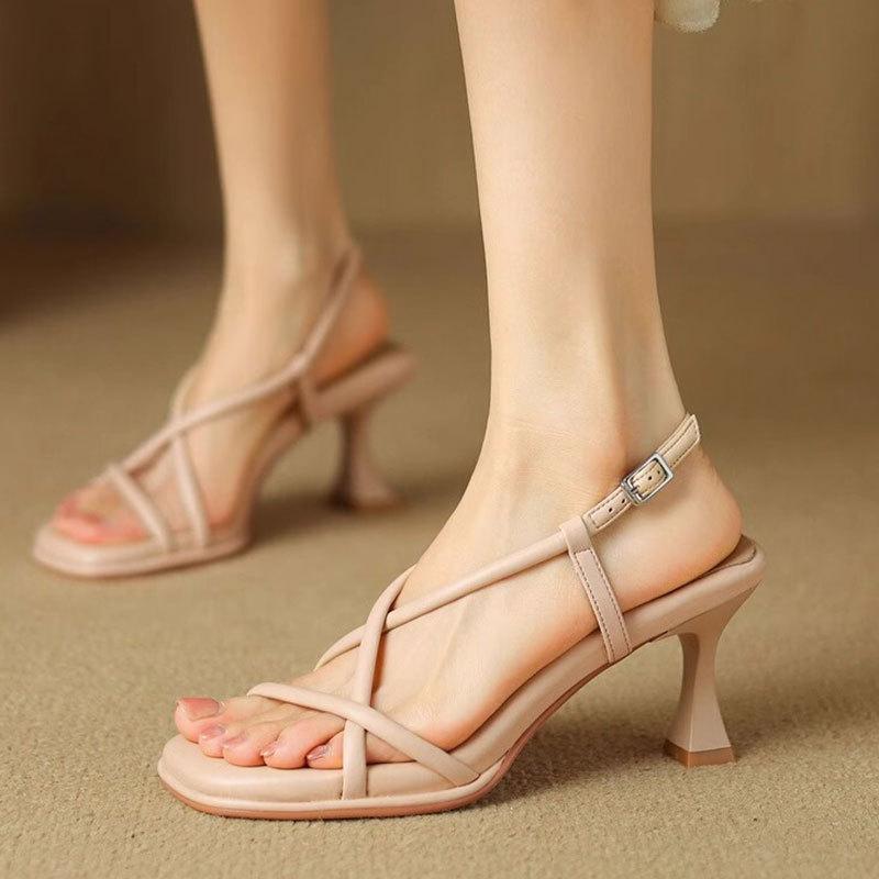 Fashion 2025 Summer New Sandals Women's Summer Outwear Thin Heels Soft Bottom French Exquisite High Heels