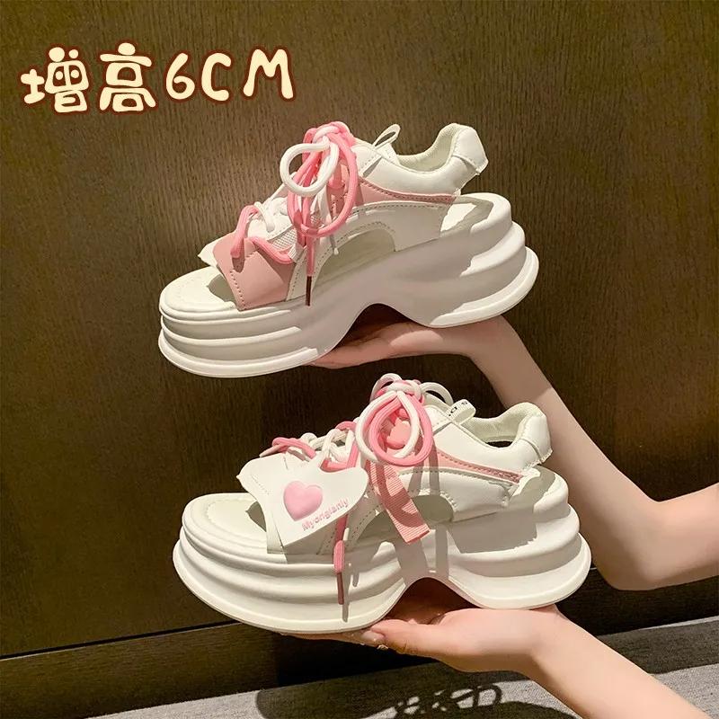 Fashion Fashion Sports Platform Sandals Summer Thick Bottom Wedge Walking Shoes Woman Peep Toe 2024 Lace Up Chunky