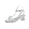 Fashion Shoes for Women Summer New Square Toe Rhinestone Sandals Female Fashion Open Toed Sexy Elegant Casual Party High Heels Sandals
