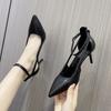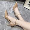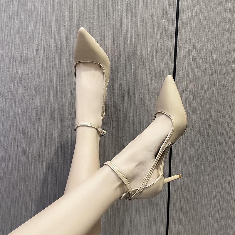 Fashion Spring Summer New Popular Women's Shoes Khaki Pointed Toe Thin Heel Strap High Heels Casual Flats Rubber Material