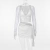 Fashion Ins New Arrival Fashion Sexy Deep V Lace Patchwork Mesh Long Sleeves Tops Sexy Sheath Skirt Outfit Women