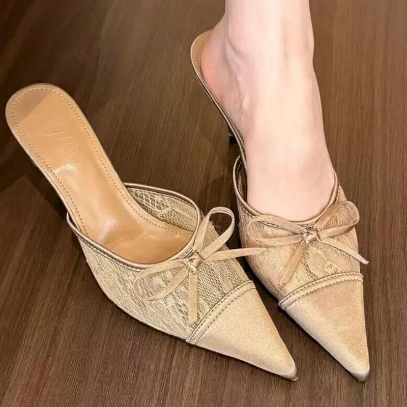 Fashion Elegant Woman Heeled Shoes Closed Toe Slippers Women Pointed Toe Butterfly-knot Dress Women's Slipper Fashion Summer Solid Heels