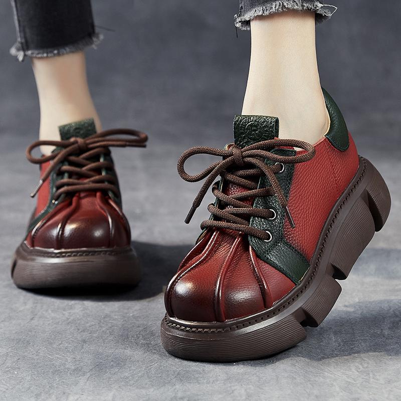 Fashion GKTINOO Thick Soled Heightening Pumps 2025 Spring New Genuine Leather Lace-up Versatile Retro Women's Platform Shoes