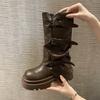 Fashion Designer Thick Heel Women Western Cowboy Boots Fashion Ladies Belt Buckle Knight Booties botas de inverno feminina