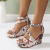Fashion Boho Shiny Embroidered Flower Fish Mouth Sandals for Women Roman Wedge Shoes Platform Back Zipper Comfortable High Heel Sandalis