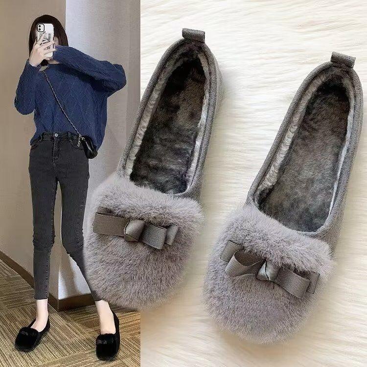 Fashion Women's Winter Furry Flat Shoes Round Toe Slip-on Female Loafers 2025 New Warm Fur Casual Moccasin Walking Shoes Zapatos Mujer